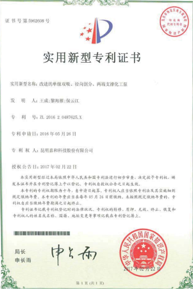 改進的單級雙吸、徑向剖分、兩端支撐化工泵