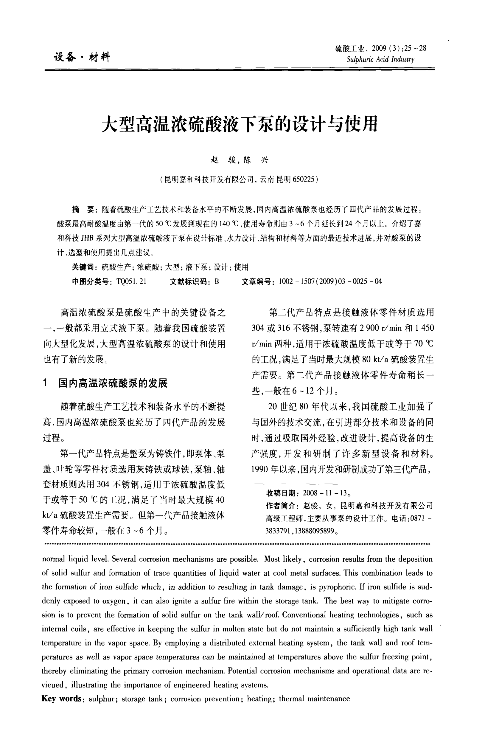 大型高溫濃硫酸液下泵的設(shè)計(jì)與使用