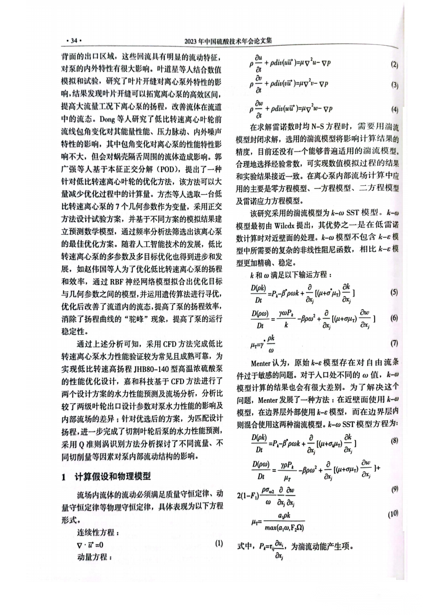 基于CFD的低比轉速高溫濃硫酸液下泵水力性能預測及流場分析