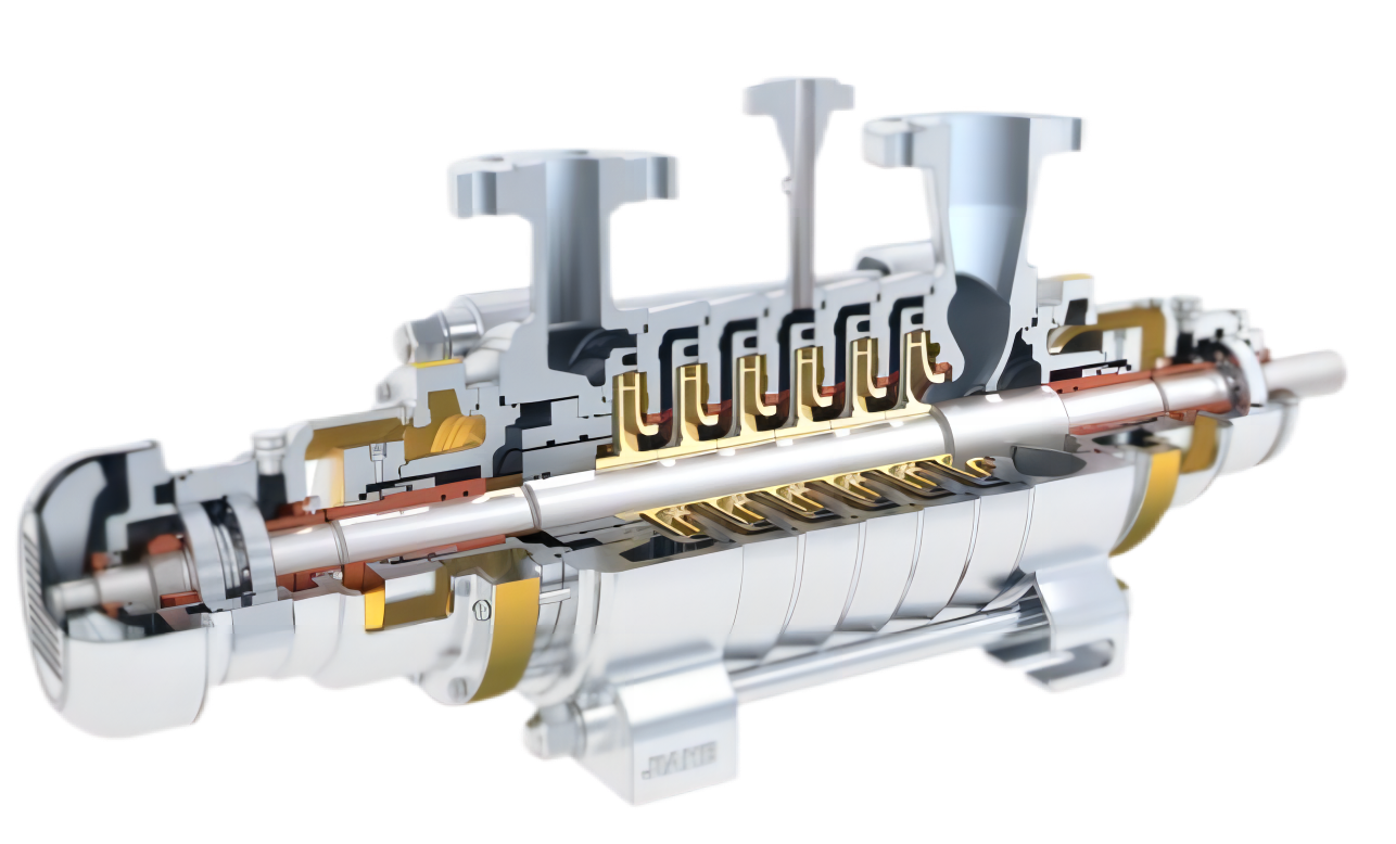 JHD 系列泵為單殼體、徑向剖分、節段式、兩端支承臥式多級離心泵。符合 API610-11th 標準。進出口法蘭 尺寸滿足 ANSI 或 ISO 標準。密封腔的設計符合 ISO21049/API682 密封標準,沖洗、冷卻、加熱、急冷和緩 沖液管路的連接符合 API 方案。