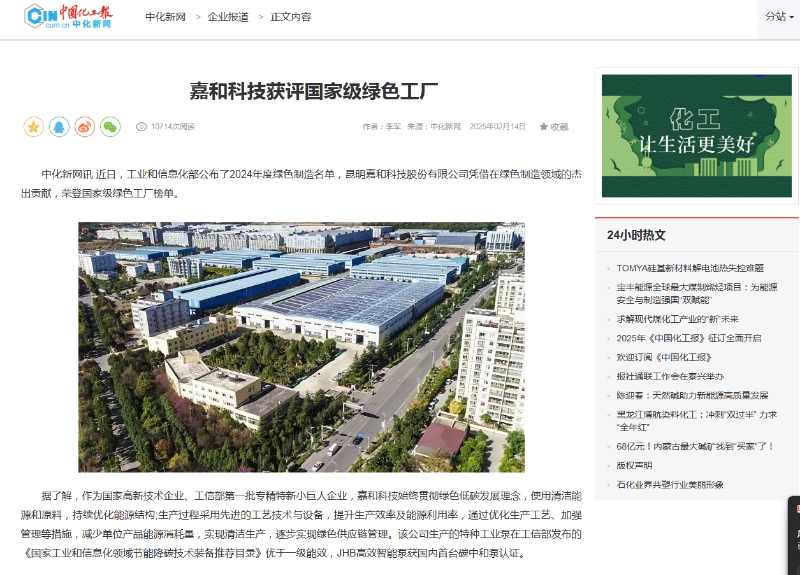 中化新網(wǎng)訊,近日,工業(yè)和信息化部公布了2024年度綠色制造名單,昆明嘉和科技股份有限公司憑借在綠色制造領(lǐng)域的本出貢獻,榮登國家級綠色工廠榜單。