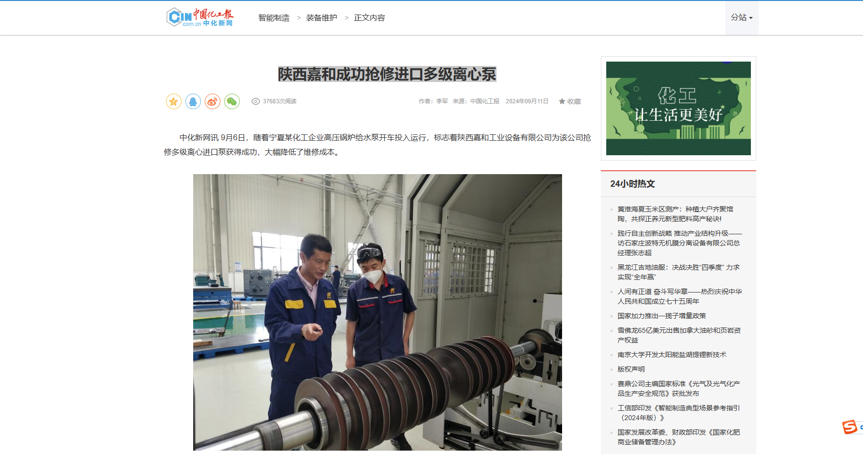 中化新網(wǎng)訊9月6日,隨著寧夏某化工企業(yè)高壓鍋爐給水泵開車投入運行,標(biāo)志著陜西嘉和工業(yè)設(shè)備有限公司為該公司搶修多級離心進口泵獲得成功,大幅降低了維修成本。