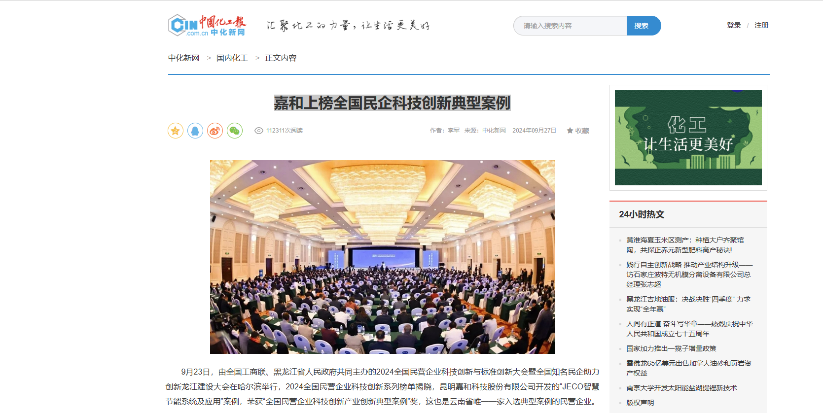 近日,2024全國民營企業(yè)科技創(chuàng)新系列榜單在黑龍江哈爾濱揭曉,昆明嘉和科技股份有限公司(以下簡稱嘉和科技)開發(fā)的“JECO智慧節(jié)能系統(tǒng)及應(yīng)用”案例,入選“全國民...