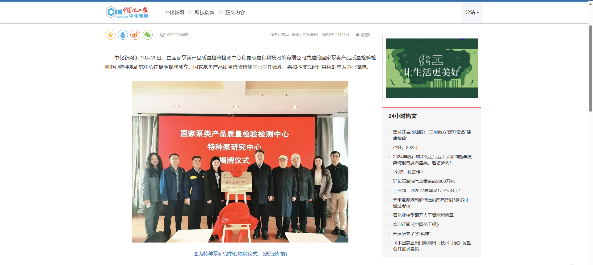 中化新網(wǎng)訊10月29日,由國家泵類產(chǎn)品質(zhì)量檢驗檢測中心和昆明嘉和科技股份有限公司共建的國家泵類產(chǎn)品質(zhì)量檢驗檢測中心特種泵研究中心在昆明揭牌成立。國家泵類產(chǎn)品質(zhì)量...