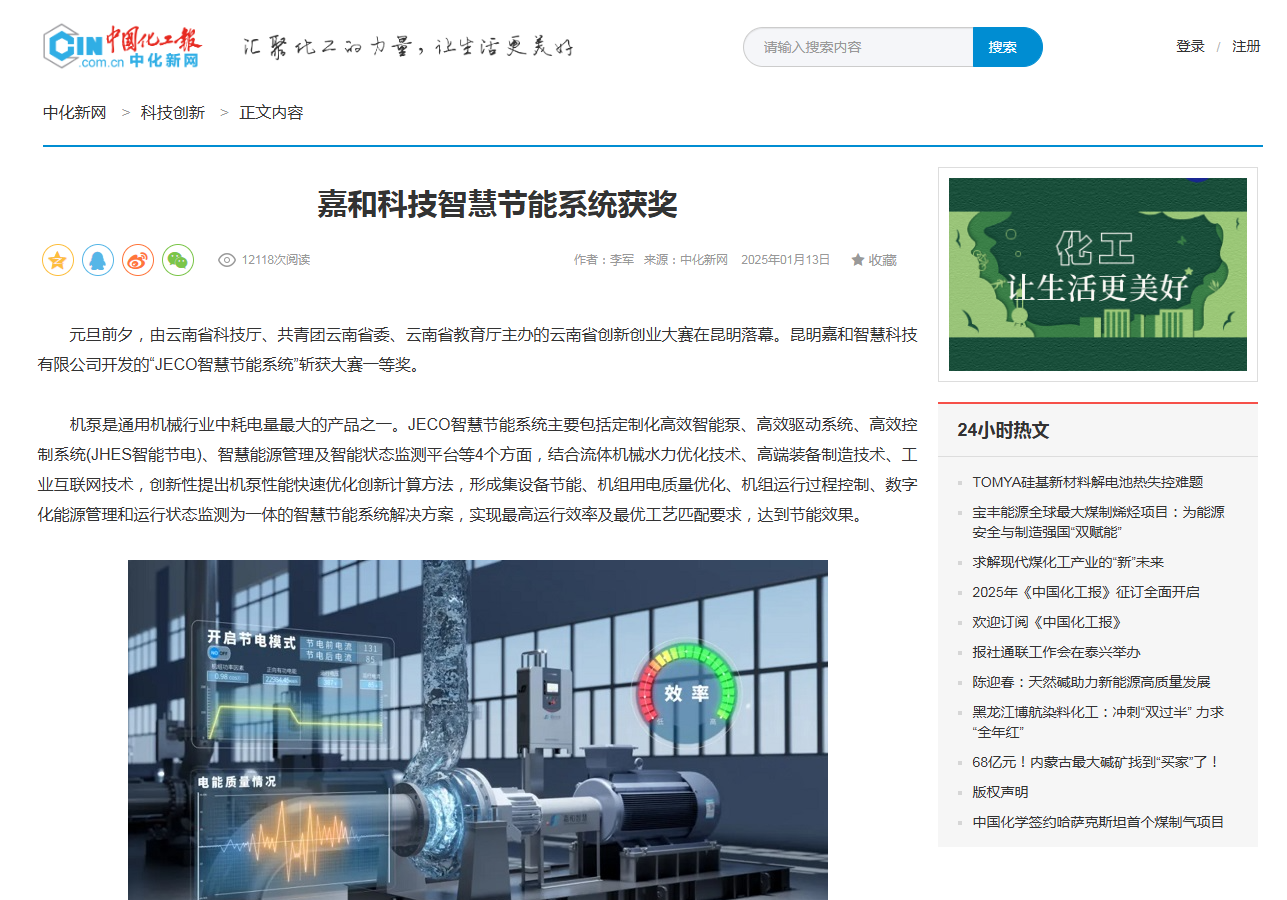 嘉和科技智慧節(jié)能系統(tǒng)獲獎