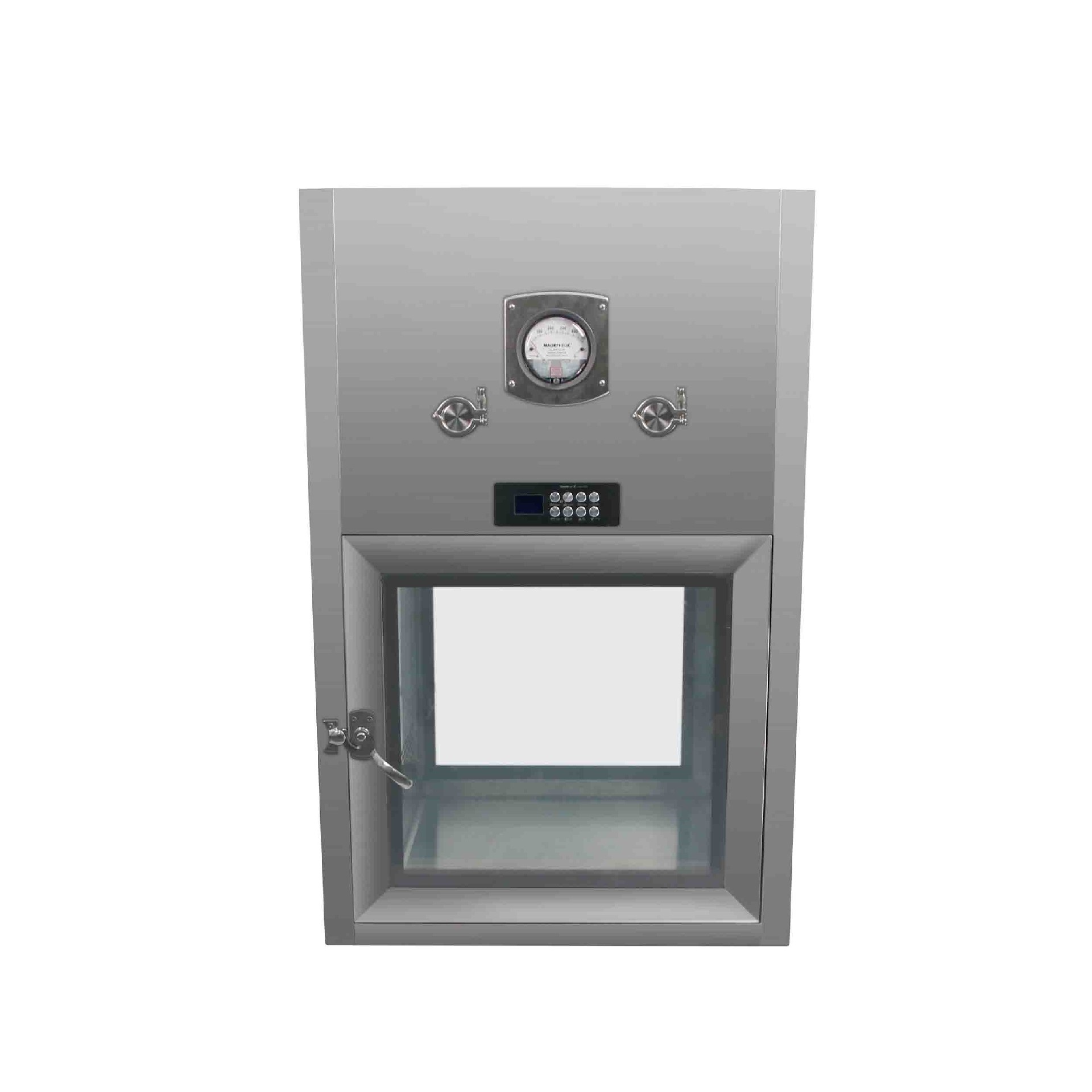 1.自凈式傳遞窗具有自凈功能,當(dāng)傳遞物品時(shí),傳遞窗風(fēng)機(jī)從內(nèi)部采風(fēng)通過(guò)頂部裝有高效的過(guò)濾器對(duì)傳遞窗內(nèi)部進(jìn)行自凈。